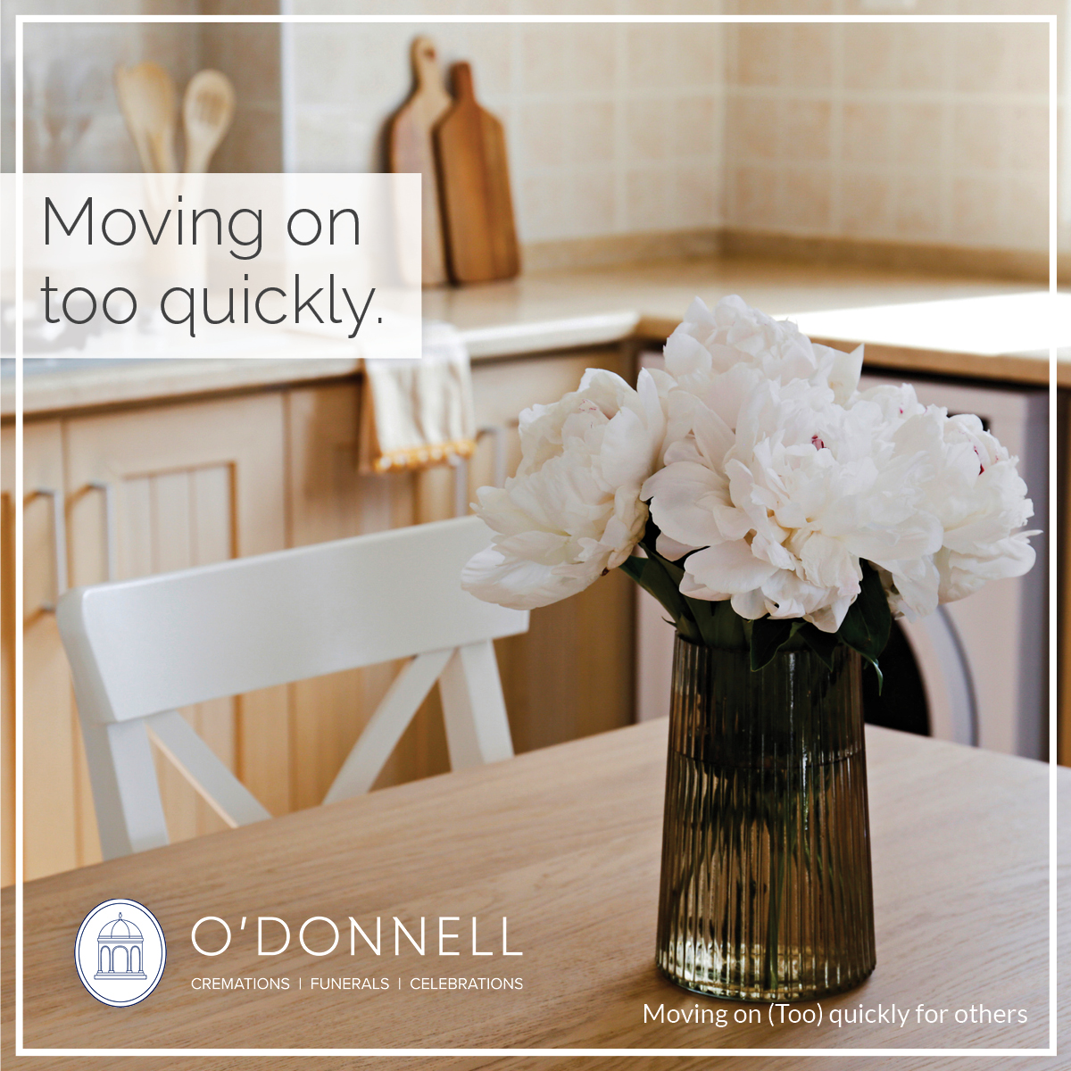 One thing that should be considered before you try to intervene when you think someone is moving on very quickly is whether or not they are really moving on at all. In the case of a daughter going back to work, she might not be trying to move on. She might simply be looking for a distraction because being at home is too painful. In which case, be kind and don't remind her of her loss. Be a friend, let her talk to you about her loss if she wants to, and otherwise be someone she can turn to when she needs to take her mind off grief or funeral planning. Although she may look like she's moving on quickly on the outside, she might still be grieving, just in a different way from your personal grieving process.