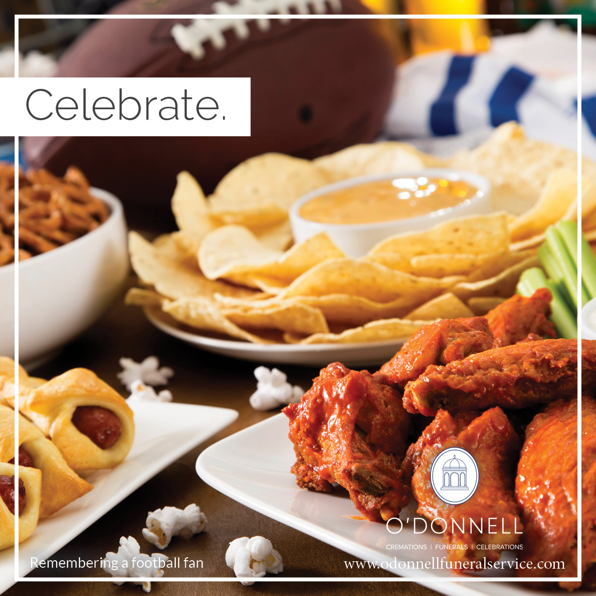 Think beyond the things you can bring in or wear and ask the eulogist to share some of the stories that make you laugh. You know, the time the car was loaded with the entire family and they drove three hours to the game only to realize when they got there the tickets were left on the table at home. Share the story of the fabulous tailgate or the terrible tailgate, freezing in the cold, or getting soaked in the rain, or losing the car in the parking lot. There are bound to be stories. Talk about how much friends and family enjoyed sharing the football passion with the person who died.