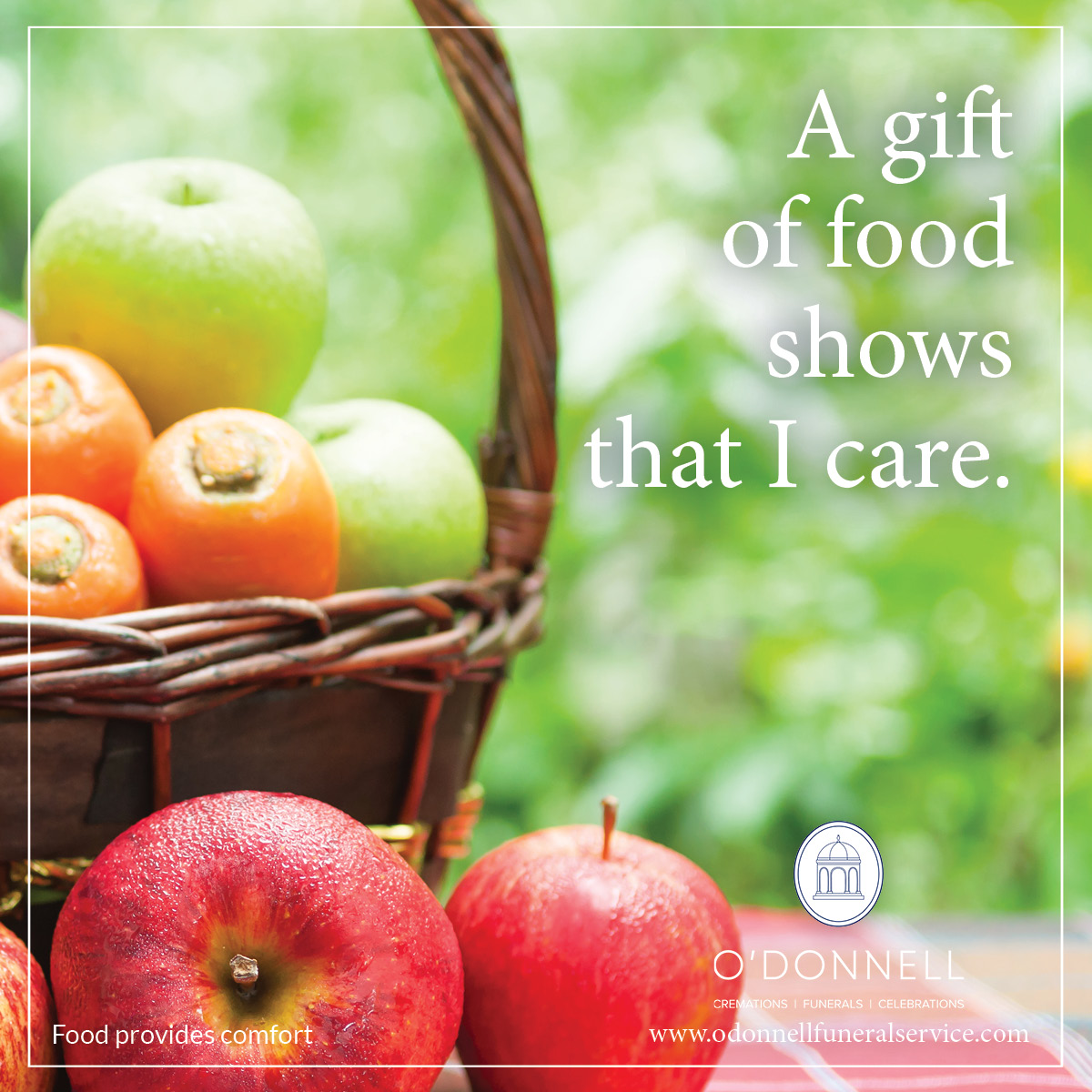 Food provides comfort and strength. A gift of food shows that we care. It’s natural to connect food with the healing process of a funeral.