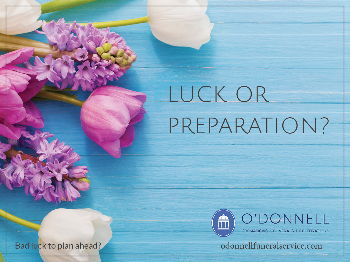Now, imagine there is a plan in place. Funeral arrangements have been made and paid for in advance, maybe even years before an illness was even known about. Imagine family members knowing exactly who to call, what will happen, how much it will cost and how all the services will be paid for. Luck is with those who prepare. It’s called making your own luck.